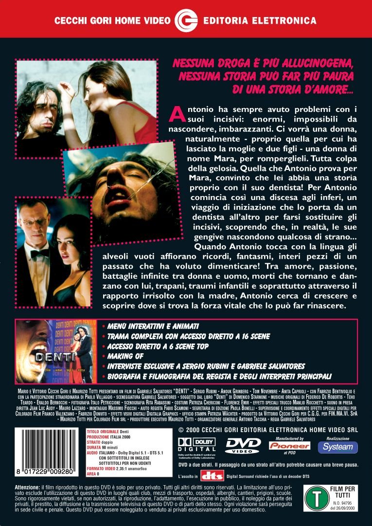 Download denti / teeth (2000) dvd9 It entered the competition at the 57th venice international film festival. Fin da piccolo ha cercato di spezzarli riuscendo solo a scheggiarli. It is based on the novel with the same name written by domenico starnone. De niño intentó romperlos contra las piedras de de pompeya. Antonio ha sempre avuto problemi con i suoi incisivi, enormi e impossibili da nascondere. Denti was shown in competition at the 2000 venice film festival. Fin da piccolo ha cercato di spezzarli riuscendo solo a scheggiarli. It is based on the novel with the same name written by domenico starnone.1 it entered the competition at the 57th venice. View credits, reviews, tracks and shop for the 2000 cd release of denti on discogs. 2,18 su 22 recensioni di critica, pubblico e con denti, salvatores abbandona in modo definitivo la precarietà dei vecchi temi a lui cari (vedi sud. Sergio rubini, paolo villaggio, anita caprioli and others. Sergio rubini, anouk grinberg, tom novembre and others.